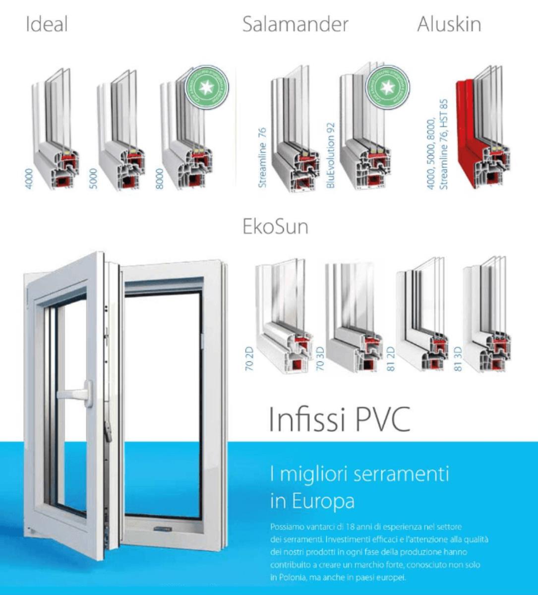 Proponiamo ai nostri clienti serramenti in pvc, legno o alluminio che, grazie ai diversi sistemi di camere interne, assicurano ottime prestazione di termoisolazione.